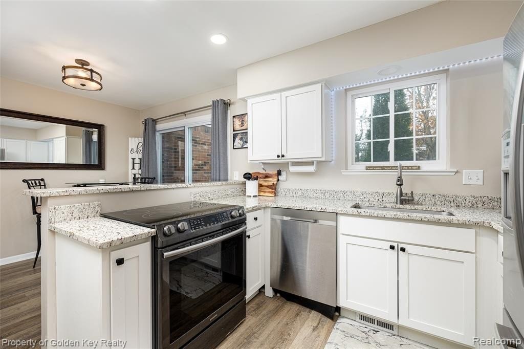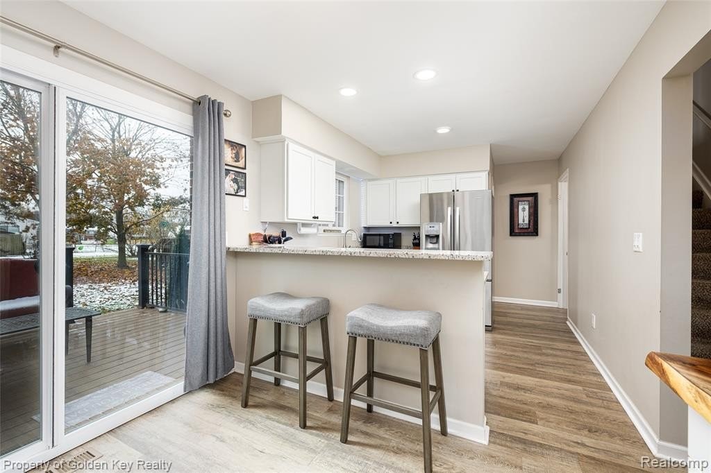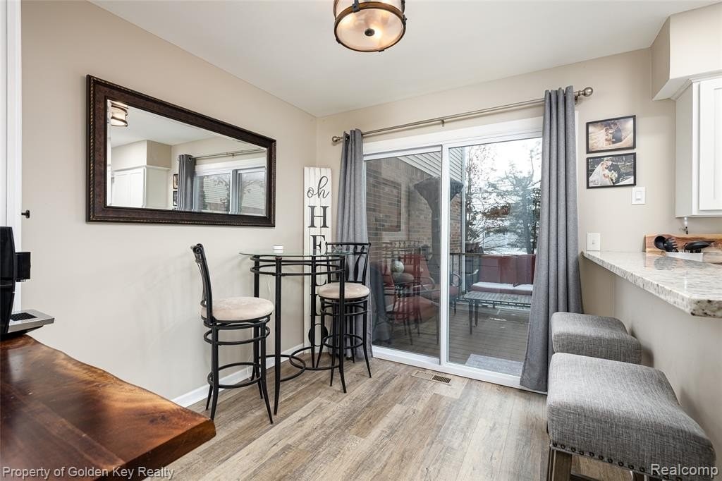 Welcome home to this beautifully remodeled condo in highly desirable South Lyon! This 2-bedroom, 1.1-bath condo is ideally located within walking distance to downtown South Lyons shopping, dining, and entertainment. The home features luxury plank flooring throughout and a maintenance-free Trex deck overlooking a peaceful, private setting. Enjoy easy access to local walking and biking trails! Updates include: granite countertops, custom Closets by Design in the primary bedroom, new light fixtures throughout, coffee bar and pantry in the kitchen, and newer appliances. The partially finished basement offers a wet barperfect for entertaining. Additional upgrades include a new hot water tank and water softener (2022). New Roof in 2024. This home has been meticulously maintained and thoughtfully updated from top to bottom. Move-in ready and truly a must-see!